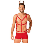 Игривый мистер Олень настроен на веселье! Пряная красная шлейка и соблазнительные трусики — очень сексуальная и чувственная пара, готовая к проказам в спальне. Повязка на голову с оленьими ушками — чрезвычайно очаровательный элемент, который идеально дополняет наряд.